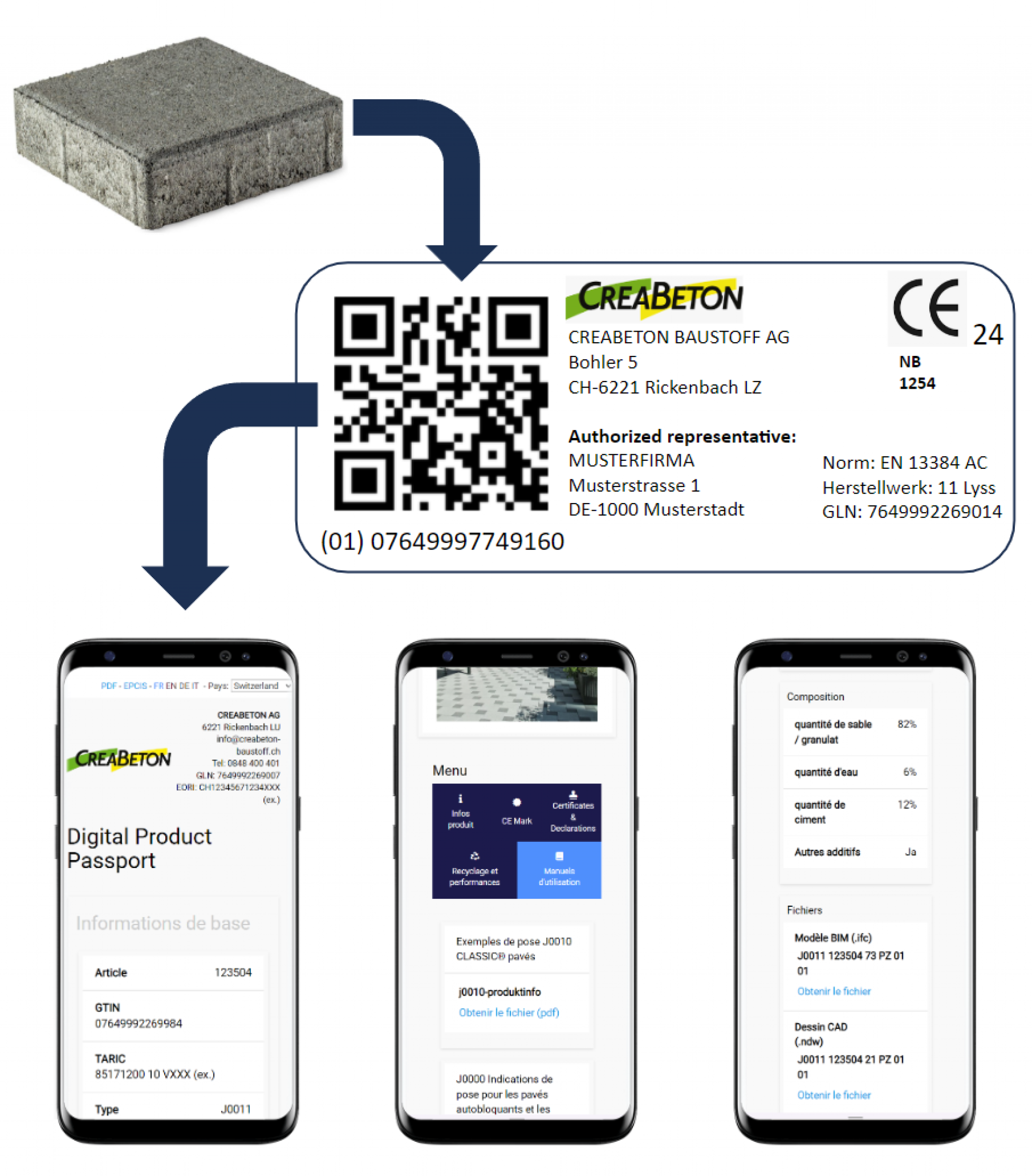 It provides a digital product sheet detailing the origin, composition, repairability, and recycling options of products.
